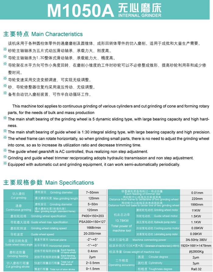 我公司主要產(chǎn)品有:內(nèi)圓磨、無(wú)心磨、數(shù)控一軸和二軸,也可按客戶零件要求設(shè)計(jì)及改裝專用磨床。