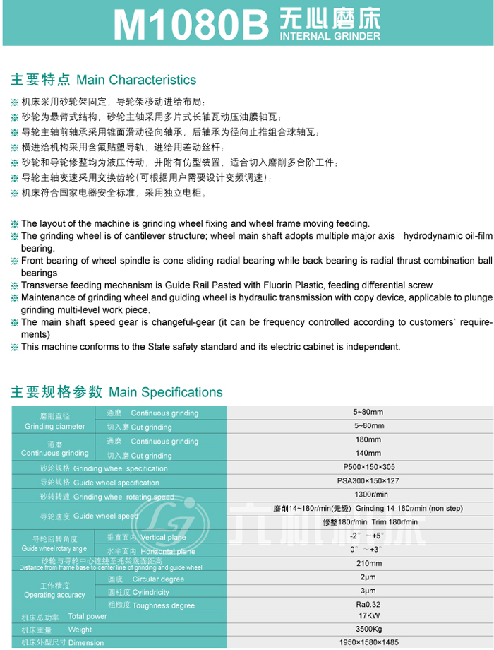 我公司主要產(chǎn)品有:內(nèi)圓磨、無心磨、數(shù)控一軸和二軸,也可按客戶零件要求設(shè)計(jì)及改裝專用磨床。
